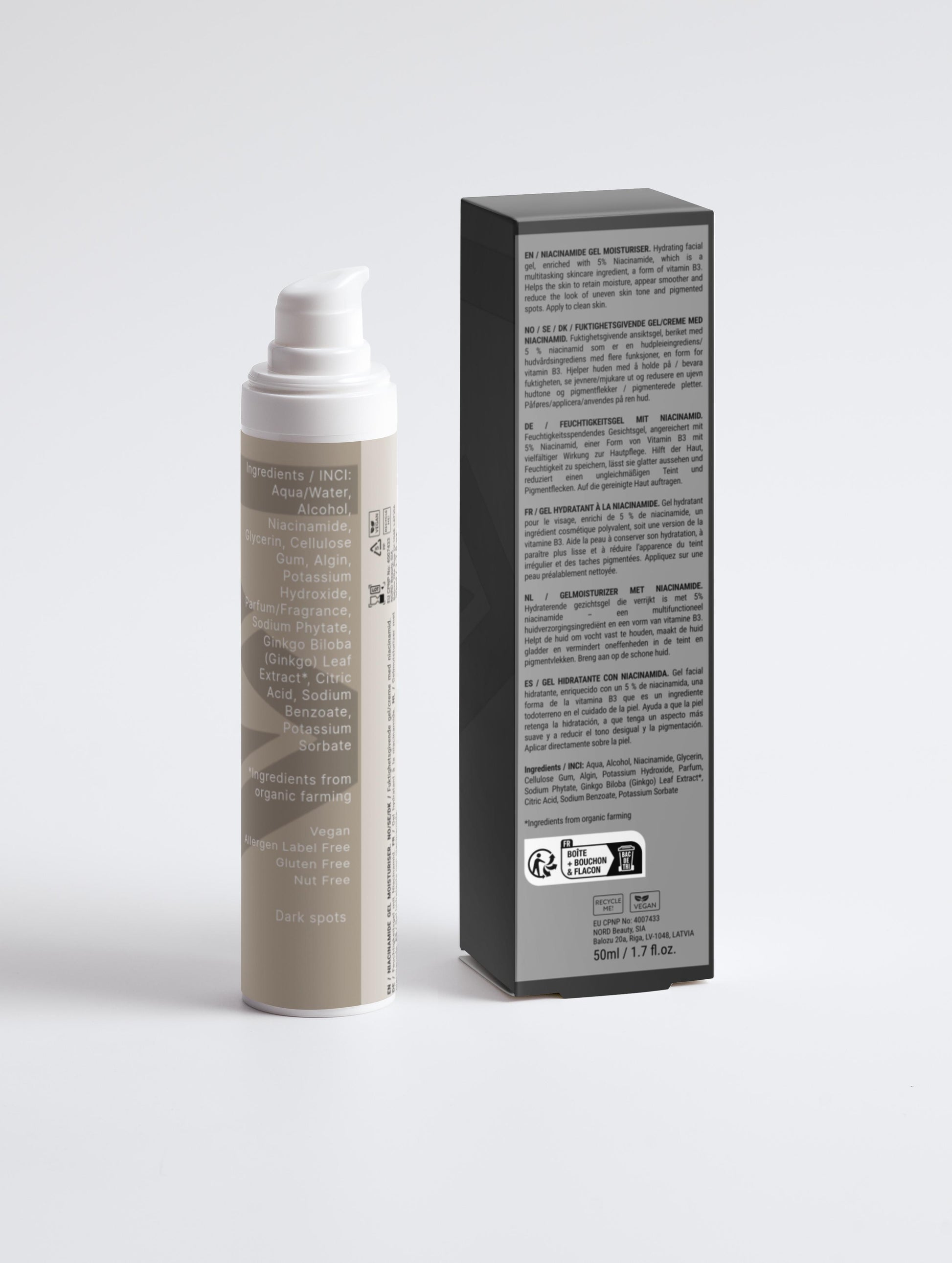 Hydrating facial gel, enriched with 5% Niacinamide, which is a multitasking skincare ingredient, a form of vitamin B3. Helps the skin to retain moisture, appear smoother and reduce the look of uneven skin tone and pigmented spots. Apply to clean skin.